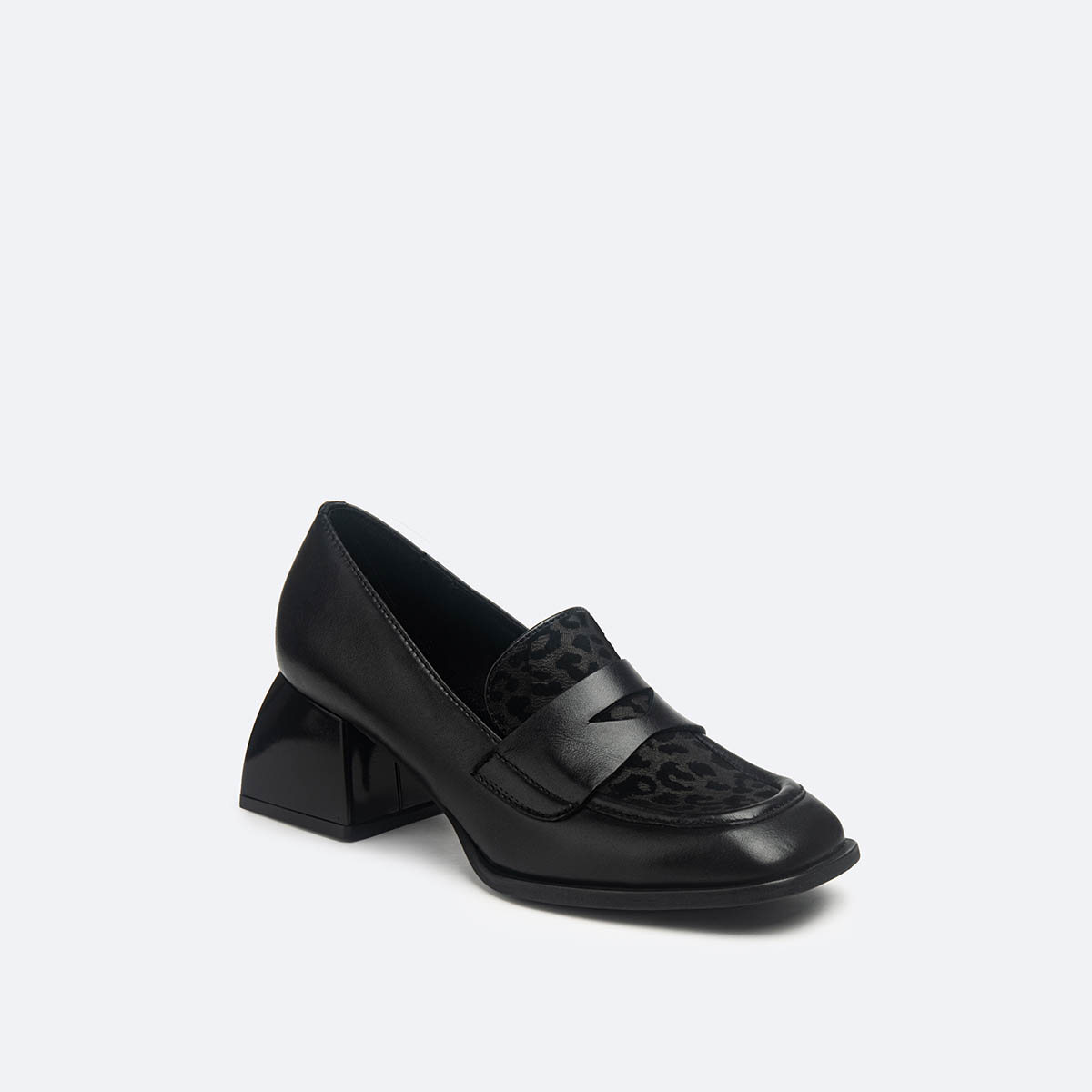 EVELINE BLACK NAPPA LEOPARD VELOUR