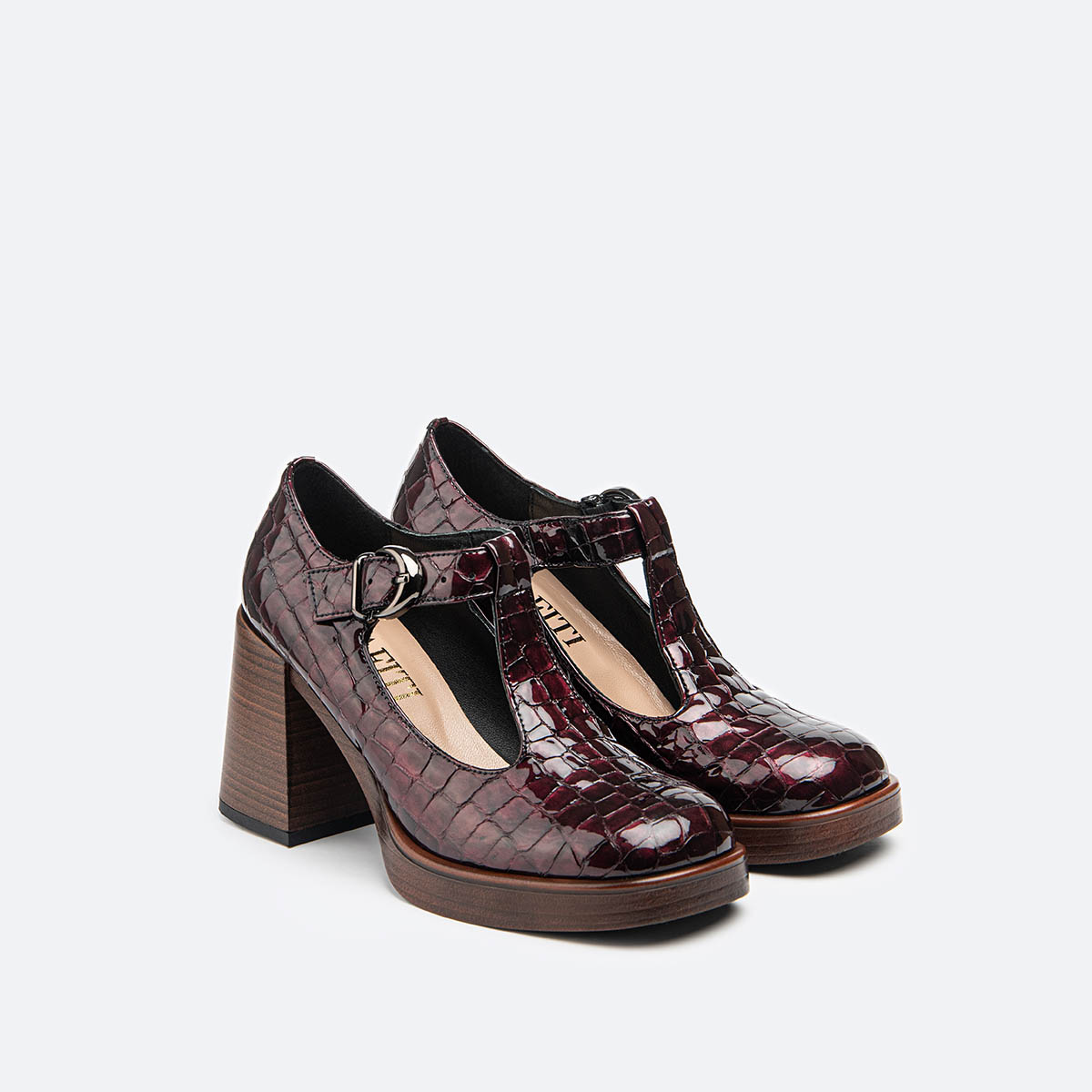 Женски кожни чевли на платформа со каиш